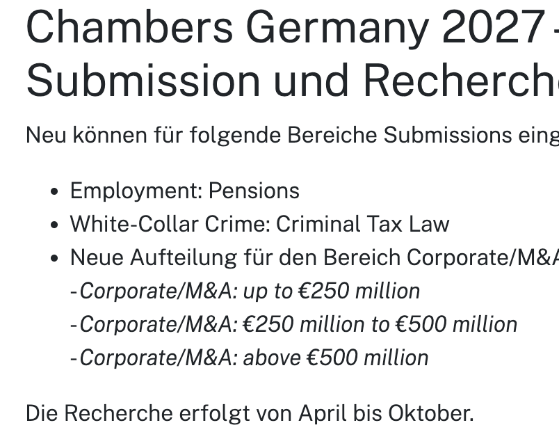 Chambers / Legal 500 / IFLR submissions